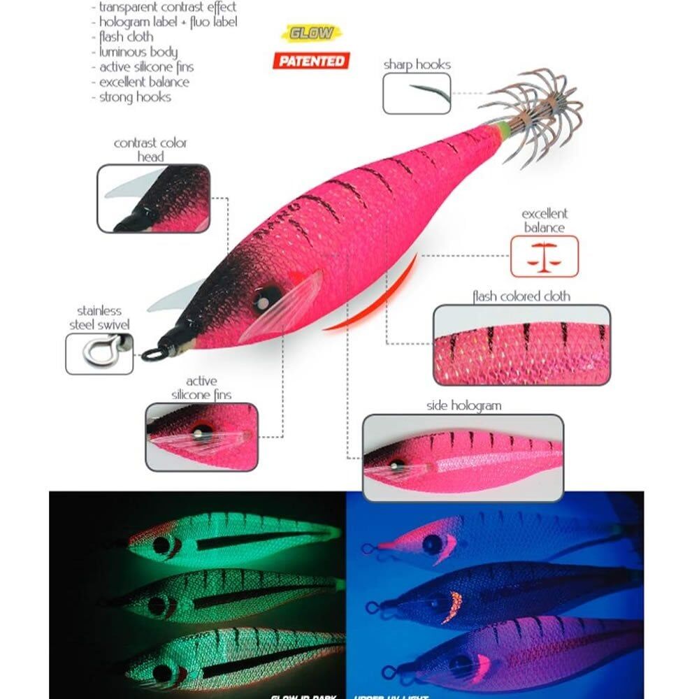 Floş detaylar içeren Zebra desenli dokulu kumaş kaplama glow gövde, Doğal aksiyonlu, Aktif silikon balık yüzgeci similasyonlu, Etkileyici renklere ve Aerodinamik gövde tasarımına sahip kalamar zokası.