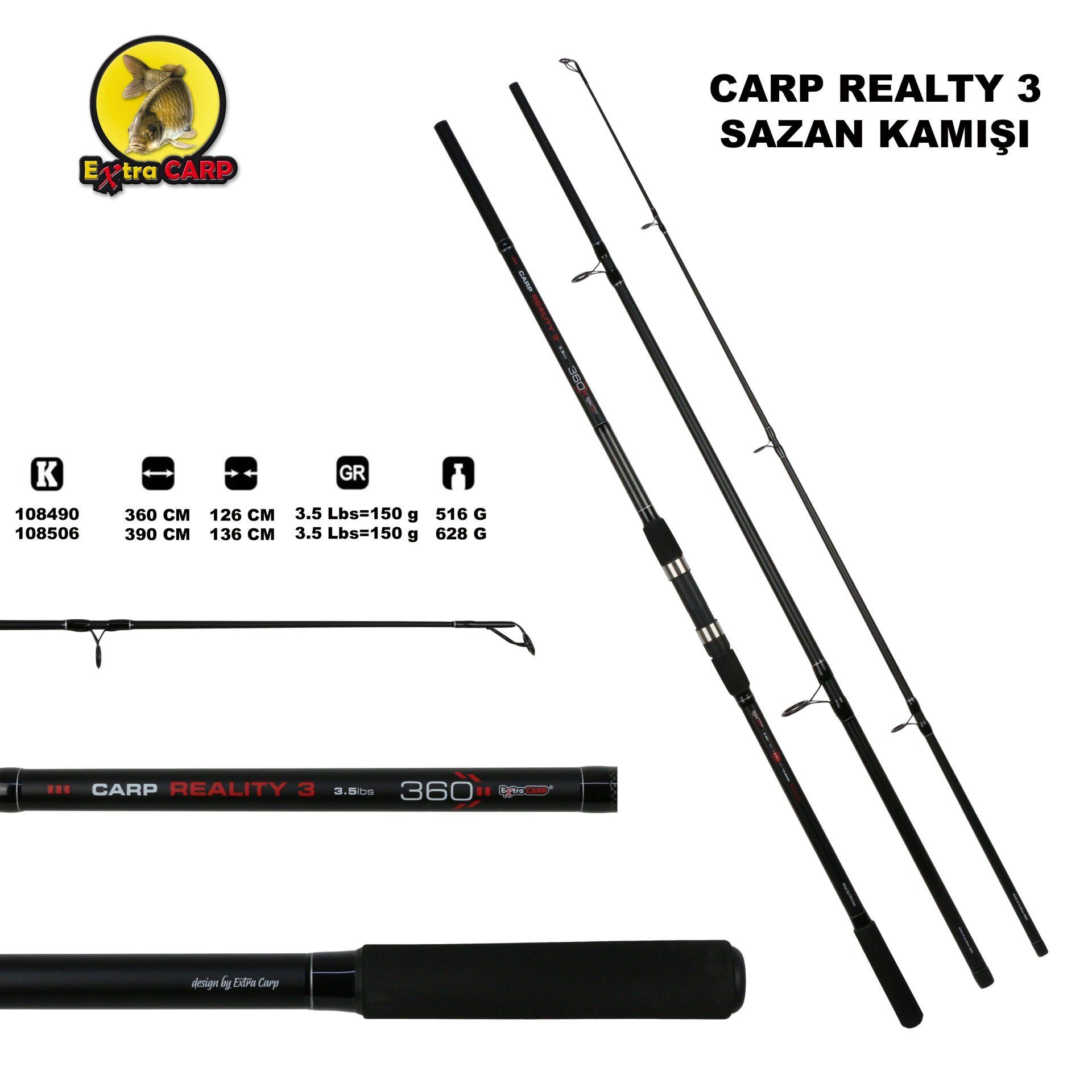 Extra Carp Reality 3 Parça Sazan Kamışı Teknik Detaylar,